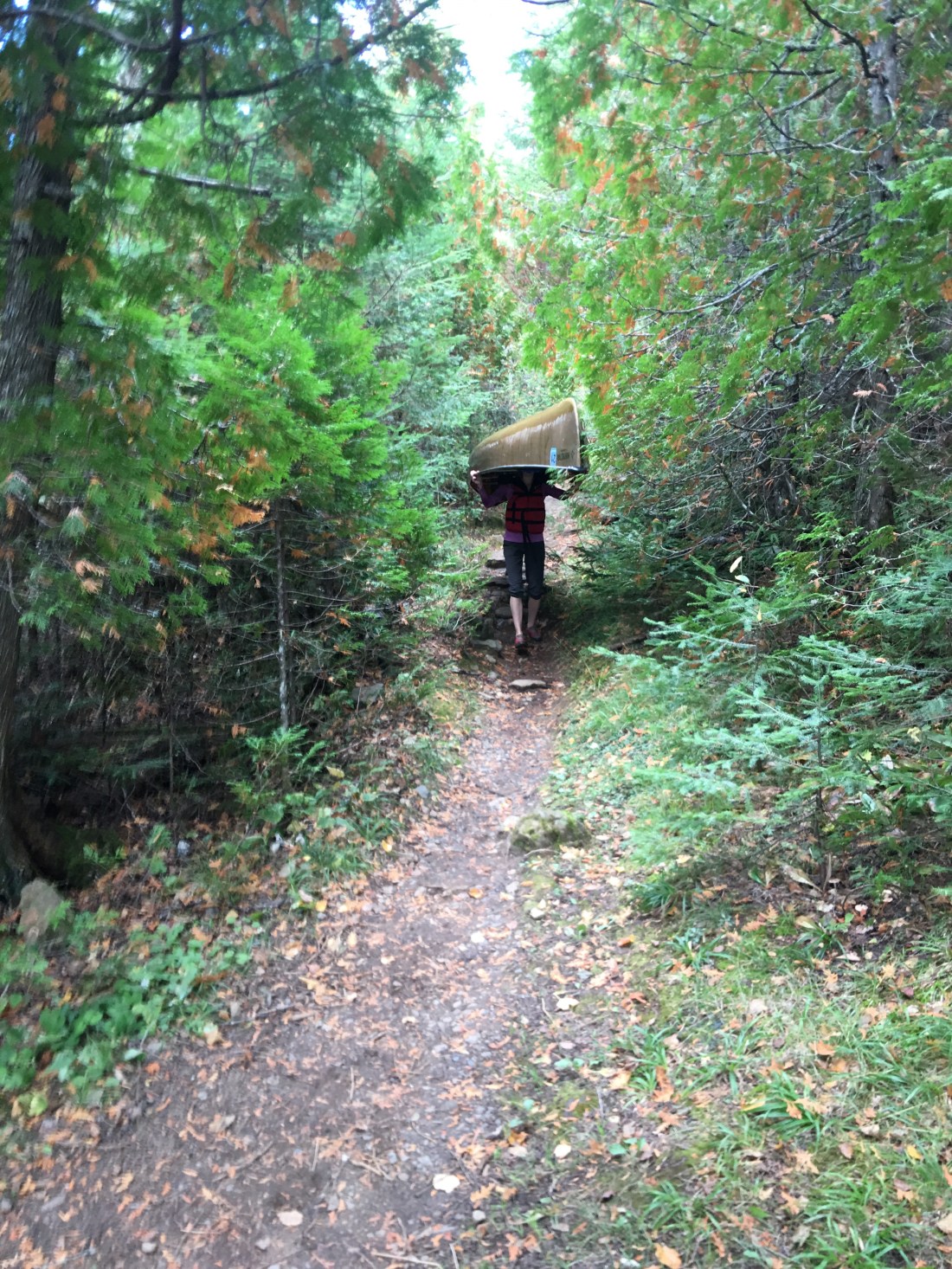 This is Steve’s daughter, Stephanie carrying a canoe through the portage. Strong …