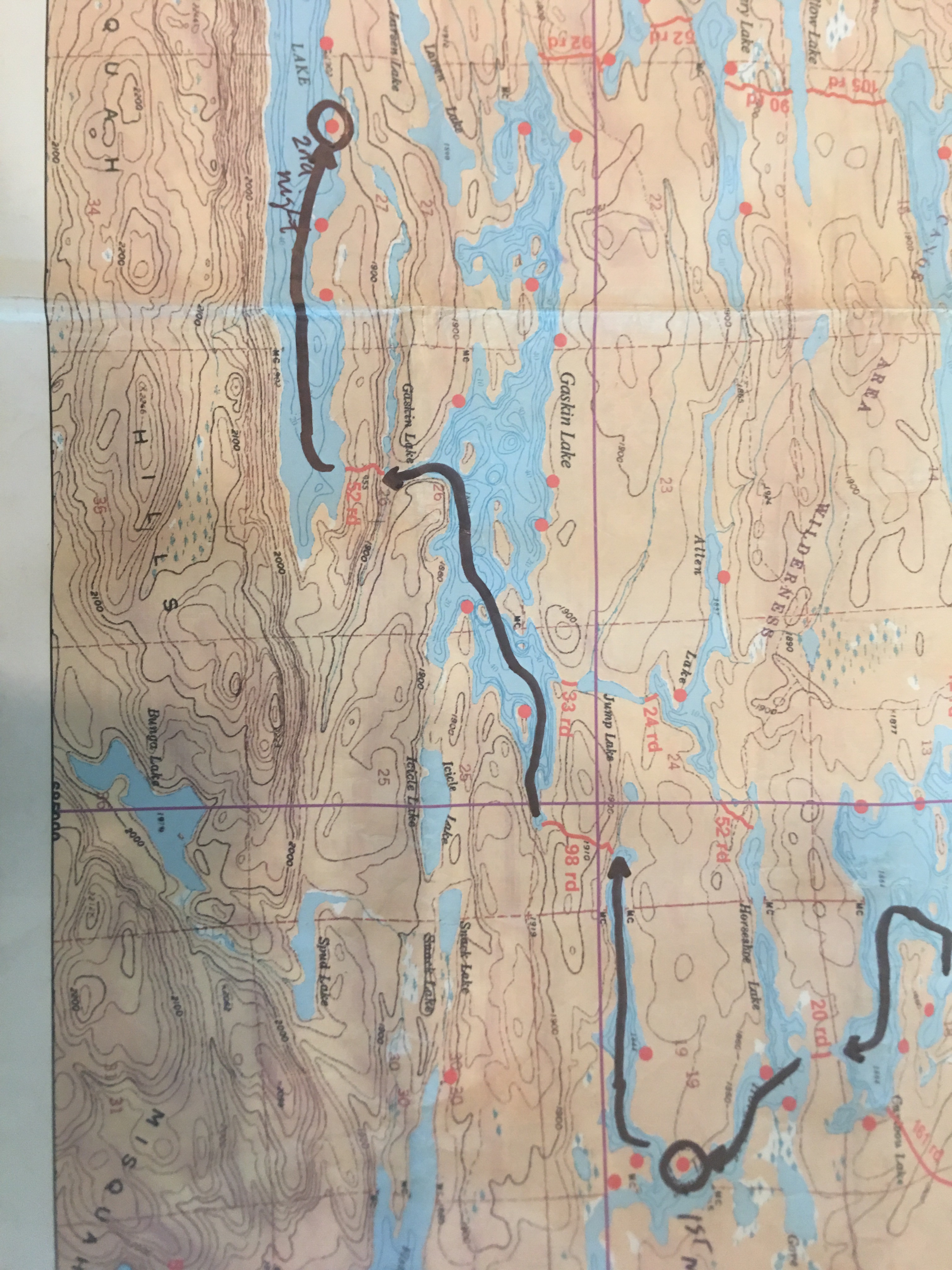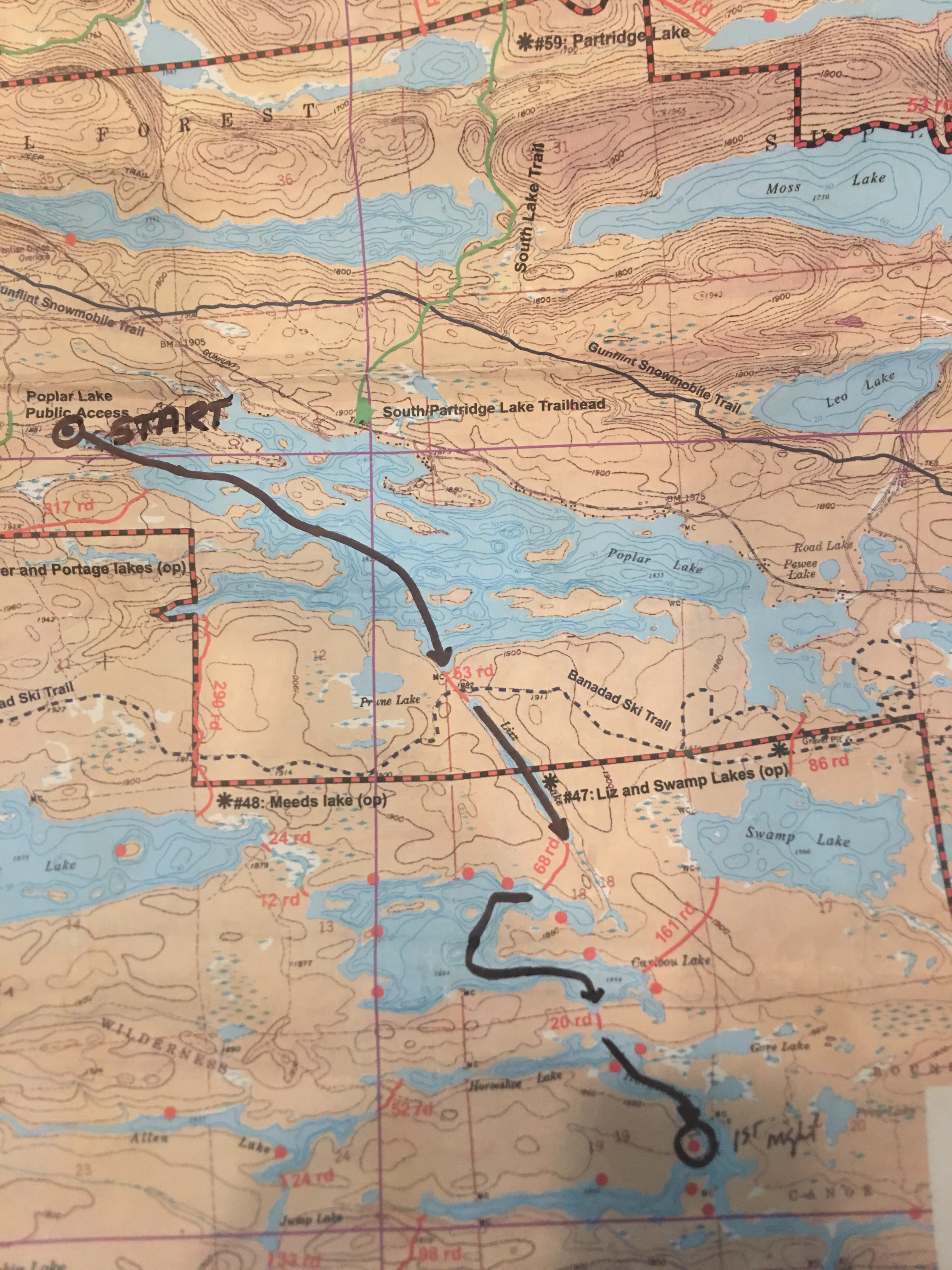 This was our route to our first camp at the Horseshoe Lake: