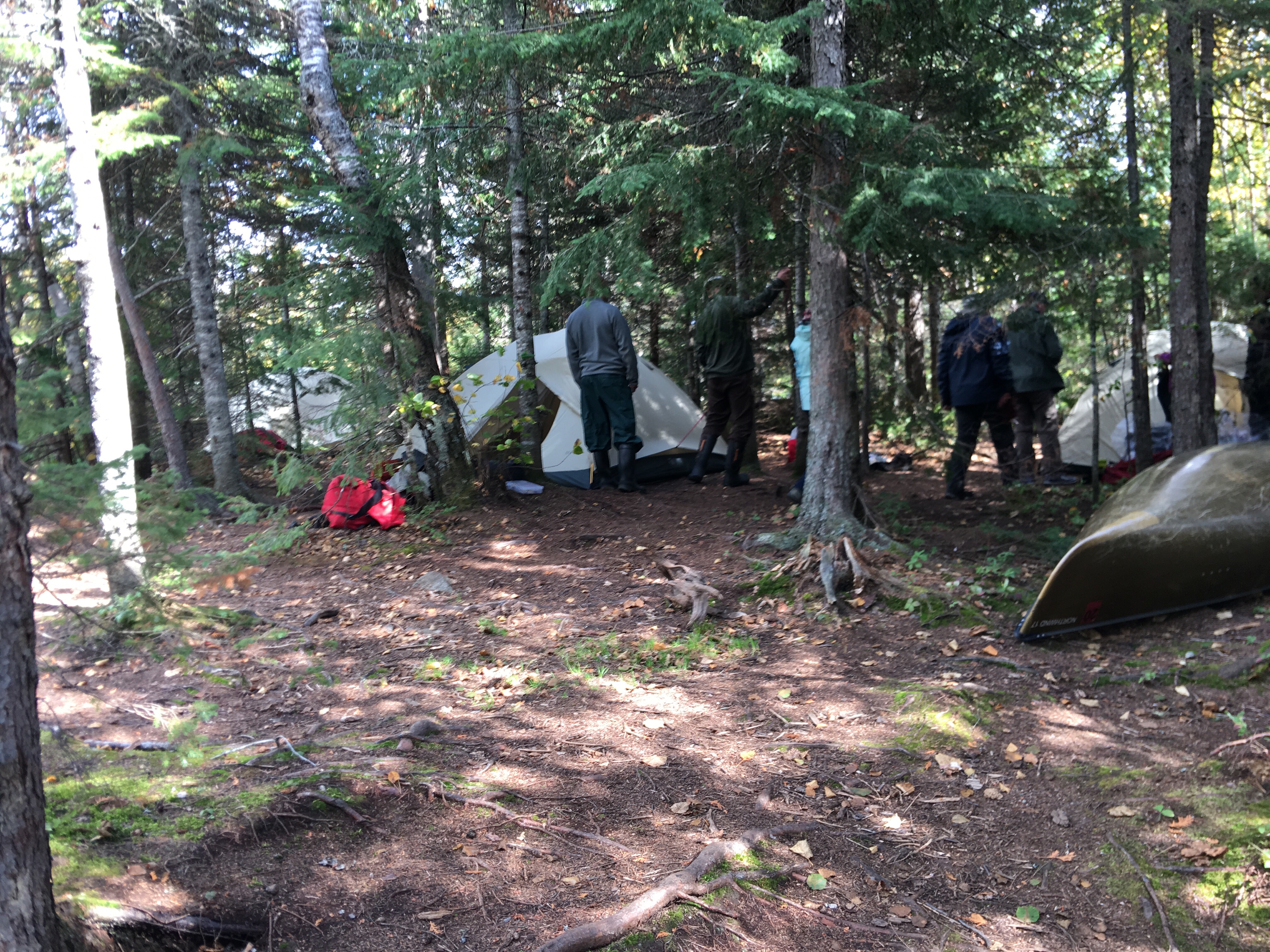 The canoe trek is not only the work of canoeing across the lake, but you have to reach the portages, unload your canoe, carry all the packs and the canoe to the next lake. The distance to hike the portages are described on “rd” (one rd is 16 ft). On the first day we cross 3 portages for a total of 151 rd or 2416 ft. Now, do not think in linear terms, the distance can be deceiving because they can be significant hill, rocky, muddy, narrow, etc.