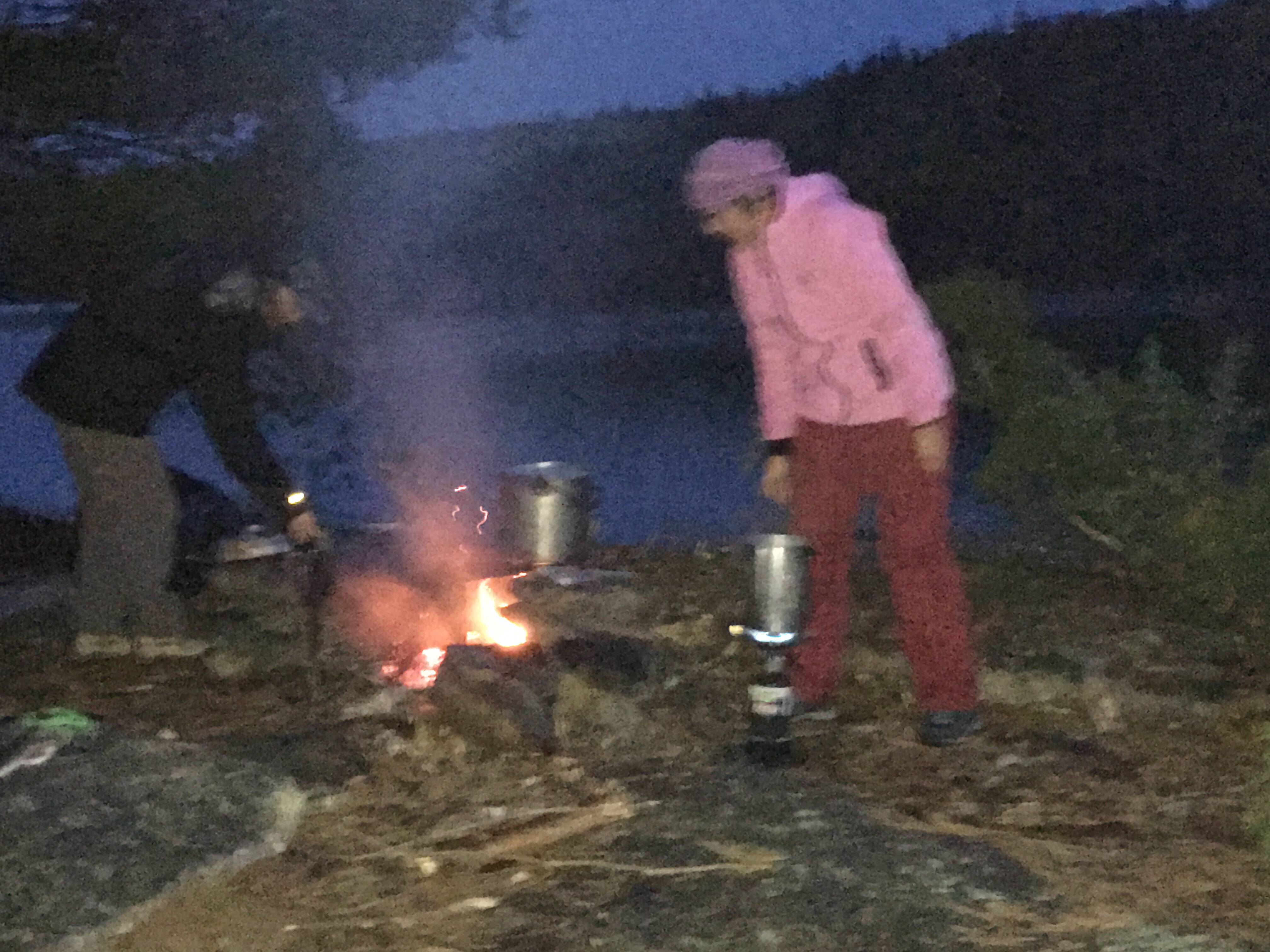 We arrived at our camping location about 2:30 PM and had lunch and set the camp, which also includes setting the ropes to hand the food, garbage and our mobile bar (backpack with the liquor flasks) away from the bears.